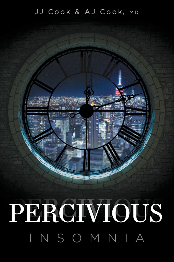 Behind the plot of Percivious Insomnia was a singular idea or more specifically a question. What would happen if someone or something could exploit your sleep hours for their own benefit? This question blossomed in a separate direction for each of us, likely from the beginning. For AJ Cook, the story was based in science fiction and for JJ Cook it involved exploring an idea never considered before and how it would impact people individually and society as a whole. In the first chapter the reader meets Dr. Cooper Delaney, a talented star at a leading pharmaceutical company. His place at the beginning of the novel is critical and his role is what fostered our first discussions about the storyline. What was at first a collection of ideas captured on paper, eventually became sentences, which were then fashioned into paragraphs, chapters and finally the novel itself.